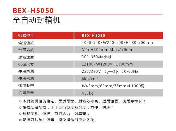 ,全自动封箱机(BEX-H5050)参数型号