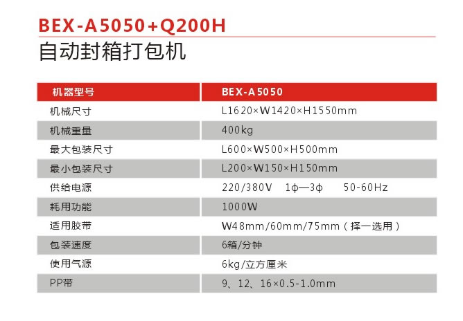 ,自动封箱打包机(BEX-A5050+Q200H)参数型号
