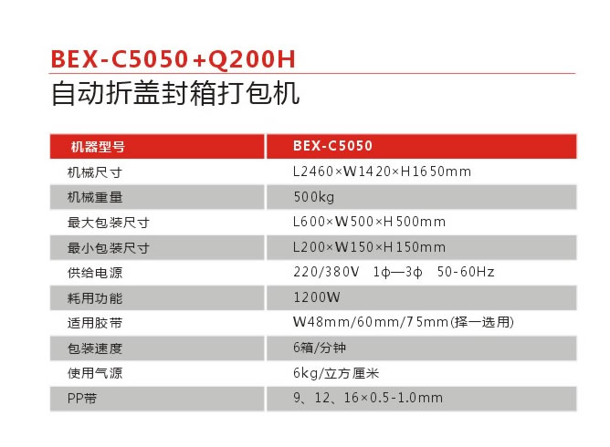,自动折盖封箱打包机(BEX-C5050+Q200H)参数型号